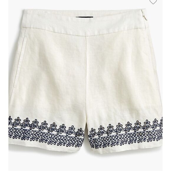 J Crew 100% linen embroidered shorts. Size 6.