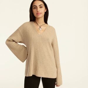 J Crew 100% Cashmere Ribbed Tunic Sweater Bell Sleeve Small BF014