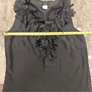 J Crew 100% Silk Navy Blue V Neck Ruffle Sleeveless Feminine Popover Blouse XS 0