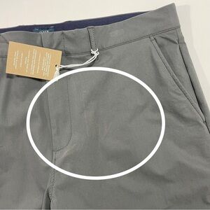 New with tags/ defects- has a faint discoloration mark on front upper thigh adjacent to waist and and zipper