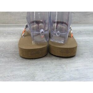 J. Crew 13127 Women's 7 Pink/Gray Braided Ribbon Slip-On Wedge Flip-Flop Sandal.