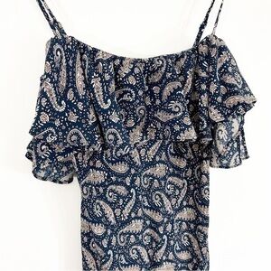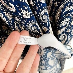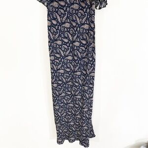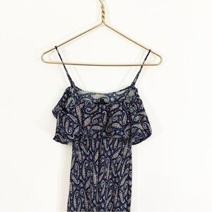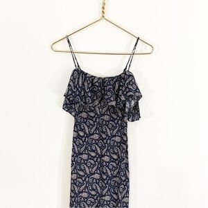 J. Crew 2 Ruffle Silk Slip Dress in Midnight Paisley Navy Ruffle Flounce Neck