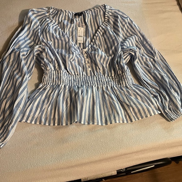 J. Crew 2023 new with tags striped peplum top sz M, color is blue and white, long sleeves, peplum has viscose under layer.
