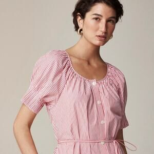 J. Crew 2024 M Button Up Midi Dress Striped Cotton Poplin Red White CA688. In good pre-owned condition with no flaws to note.