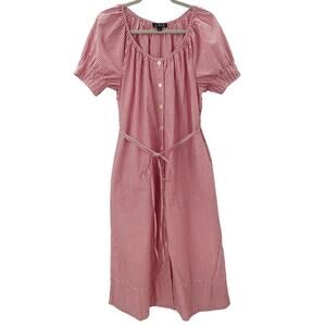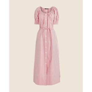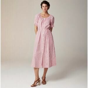 J. Crew 2024 M Button Up Midi Dress Striped Cotton Poplin Red White CA688