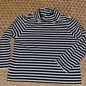 J Crew Mock Neck 3/4 Length Sleeve Black and White Stripe Pullover. Sz Small. 100% cotton. Heavier jersey weight. Layer over a t-shirt or button up.