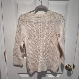J. Crew 3/4 Sleeve Cableknit Sweater Cream/White - Size Medium