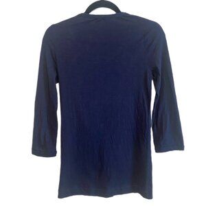 J. Crew 3/4 Sleeve Navy Top with a Ruffled Front Panel Size XS