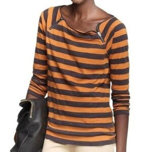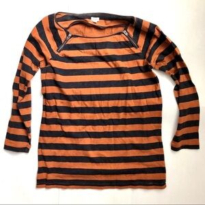 Great J. Crew burnt orange and navy blue striped top for transitioning between seasons!