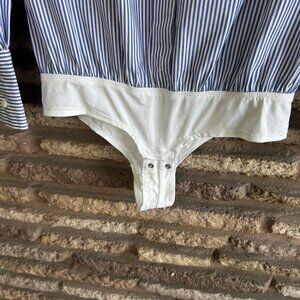 J. Crew 365 Blue Perfect Striped Stretch Band Collar Bodysuit Size 4