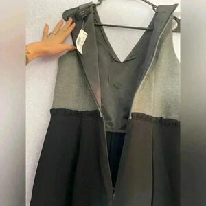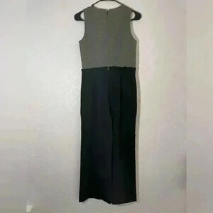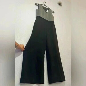 J Crew 365 Ruffle Waist Corpcore Wide Leg Grey Tank Black Combo Jumpsuit size 0P