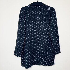 J.Crew blazer, sweater blazer, polka dot cardigan, navy ivory jacket, Sophie blazer, open front cardigan, preppy layer, merino wool blend, workwear blazer, classic wardrobe staple.