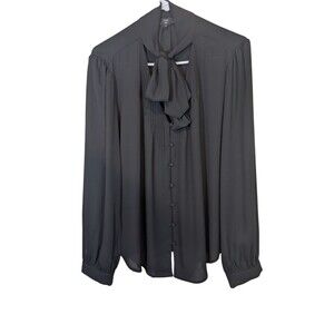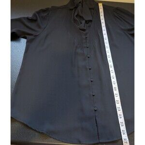 J. Crew 365 Top Black Tie V-Neck Pintuck Pleats Preppy Semi-sheer Size 14
