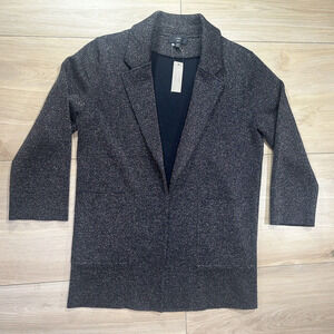 NWT J. Crew 365 XS Sparkly Black Gold Sophie Open Front Sweater Blazer K2426 Party, date nights, two front pockets.