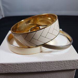 J. Crew 3pcs Cream Grey Enamel Gold Tone Bangle Bracelet