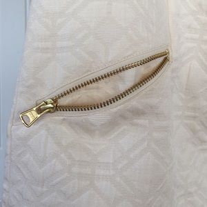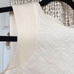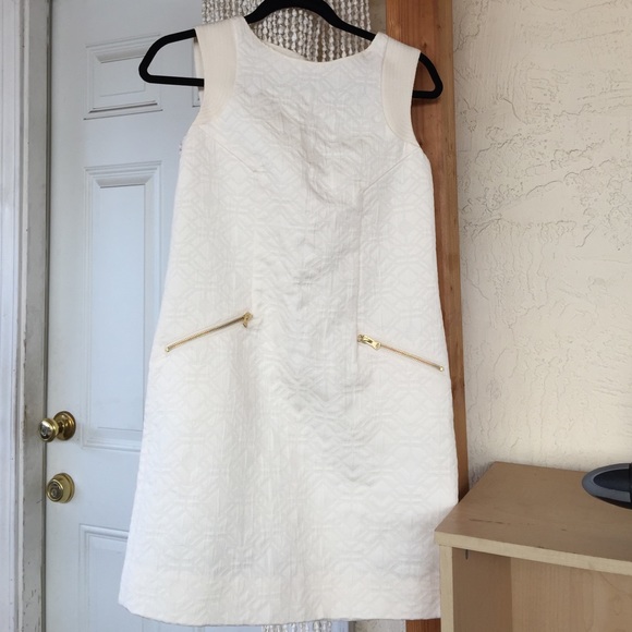 White ivory dress size xxs runs big regular for size 2-4. Photos don't do justice it's beautiful impersonal. Fabric looks really sophisticated. I can't model the dress it's really tight on me.