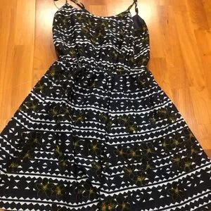 Elevate your wardrobe with this chic black and gold patterned dress. Perfect for any occasion, this dress combines elegance with comfort.