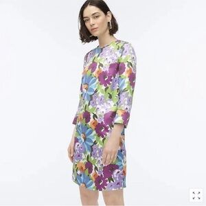 NWT J. Crew 100% silk 3/4 sleeve mini dress with bold floral patterns. Ideal for lively outings. Size 2