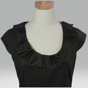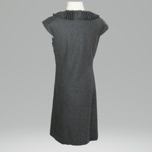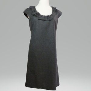 J Crew 6P Gray Sheath Dress with Ruffle Neckline