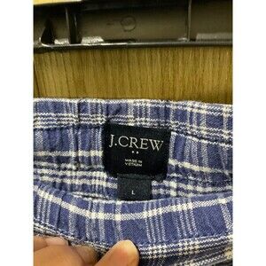 J Crew 7" Reade Cotton Linen Blend Drawstring Shorts Blue Gingham Mens L