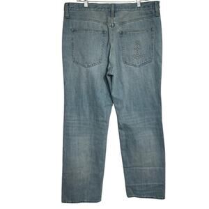 J. Crew '84 Slouchy Jean Women's 31 Mid-Rise Anchor Pocket Rigid RE-84-IDG NEW. Perfectly relaxed and 80s inspired with a true straight leg and a just-right mid-rise. This one comes with an extra-special detail: an anchor design done entirely in studs on the back pocket. Button fly.