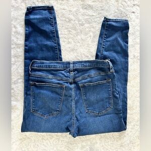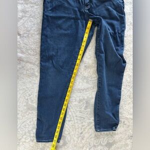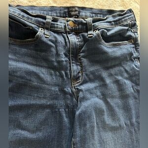 J. Crew 9” High Rise Skinny Jeans are in good pre owned condition. Some puckering in crotch area.