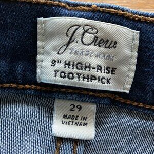 J. Crew 9" Highrise Toothpick dark wash classic 5 pocket stretch denim size 29