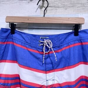 J Crew 9" Long Board Short In Oxford Blue Stripe Lined Pockets Swim Mens 32