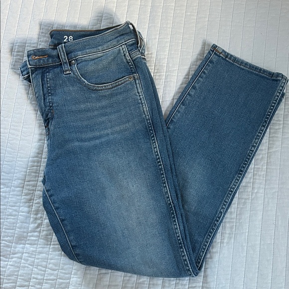 JCREW 9” Vintage Skim Straight jeans in. Medium wash (don’t know their exact name for the color). In good used condition. Inseam 26.5.