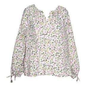 Elevate your wardrobe with this J.Crew blouse in a beautiful Meadow Floral pattern. This top features a tie-sleeve and button-front closure, adding a touch of elegance to your outfit. Made of high-quality cotton poplin material, this blouse is both comfortable and durable. The pink color and peasant theme make it perfect for any casual occasion. The blouse is available in size S and is suitable for regular size types. The accents of the buttons give it a unique touch. Add this J.Crew blouse to your collection and give your style a fresh look.
