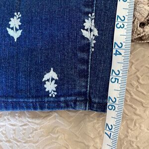 J. Crew. 9” High Rise Toothpick Jeans w/floral pattern. Size 25