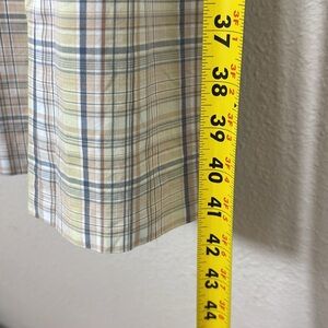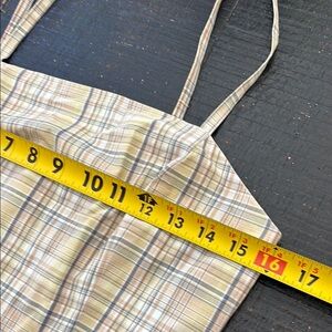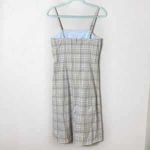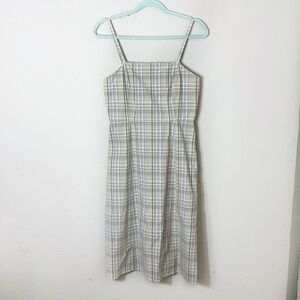 J. Crew A Line Dress Beige Dusty Blue Plaid Spaghetti Strap Square Neck size S