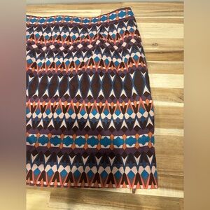 J. Crew A-Line Skirt - Blue, Orange, Brown Geometric