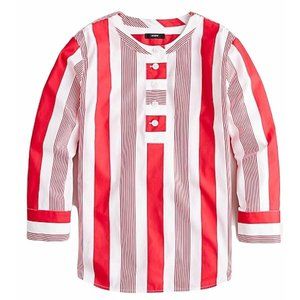 J Crew AM643 Button-front Cotton Poplin Tunic in Red Stripe XS NWOT