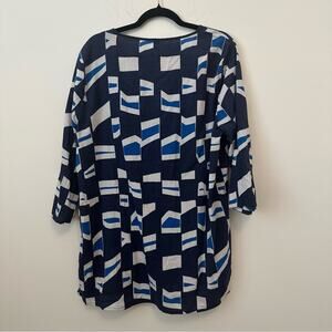 J. Crew Abstract Blue and White Patterned Cover Up/Blouse XXL