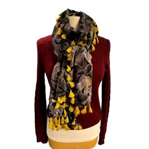 J Crew Abstract Gray Black Long Lightweight Scarf Yellow Fringe tiny flaw