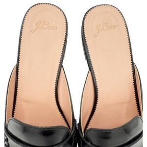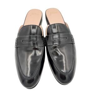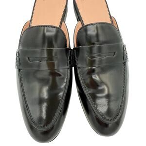 J.Crew Academy Penny Loafer Slides Black Glossy Leather Flat Mules Size 10