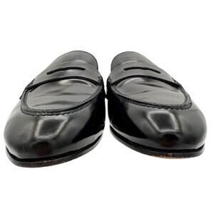 J. Crew Academy Penny Loafer Slides Slip-On Black Glossy Leather Flat Mules