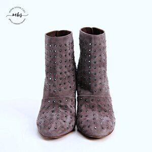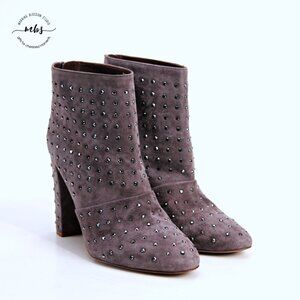 J. Crew Adele Suede Leather Studded Ankle Heel Boots Gray Women 8