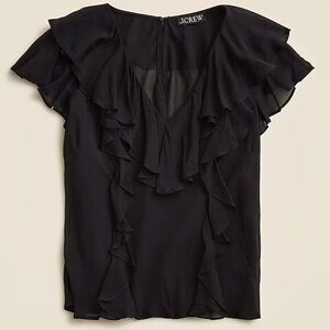 J. Crew All Over Ruffle Chiffon Blouse Sheer Layered Romantic Delicate Black S