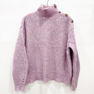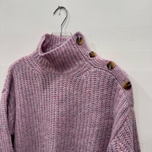 J. Crew Alpaca Blend Turtleneck Sweater Shoulder Buttons Large Pink Knit