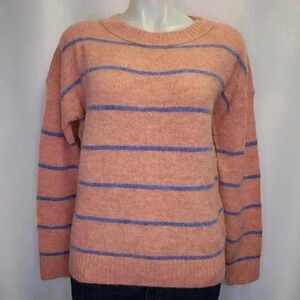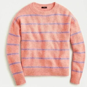 J. Crew Alpaca Merino Wool Pink Blue Striped Sweater Black Label Barbiecore XS
