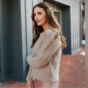 J. Crew Alpaca Merino Wool Textured Knit Crew Neck Pull over Puff Sleeve Sweater