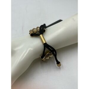 J. Crew Amber Color Rhinestone Gold Tone Black Toggle Adjustable Bracelet