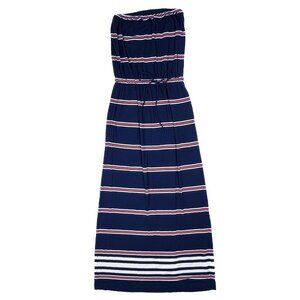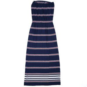 J. Crew Amie Navy Orange White Stripes Classic Tube Maxi Summer Dress Size XXS