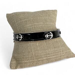 J Crew Anchor Bangle Bracelet Black Enamel Silver Tone Nautical Rockabilly