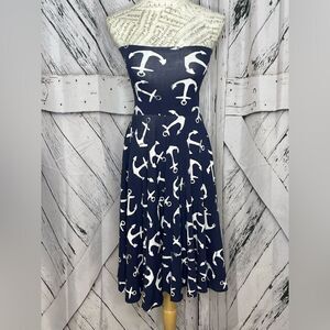 J. Crew Anchor Midi Skirt/Strapless Dress Navy Nautical White Stretch Size S