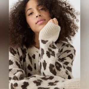 J. Crew Animal Print Oversized Cardigan Sweater Jacket Womens Medium Merino