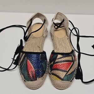 J Crew Ankle Wrap BAJA RAFFIA Espadrilles multi color.