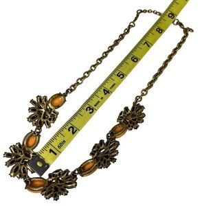 Antique gold chain with clear amber rhinestones and orange accent stones.